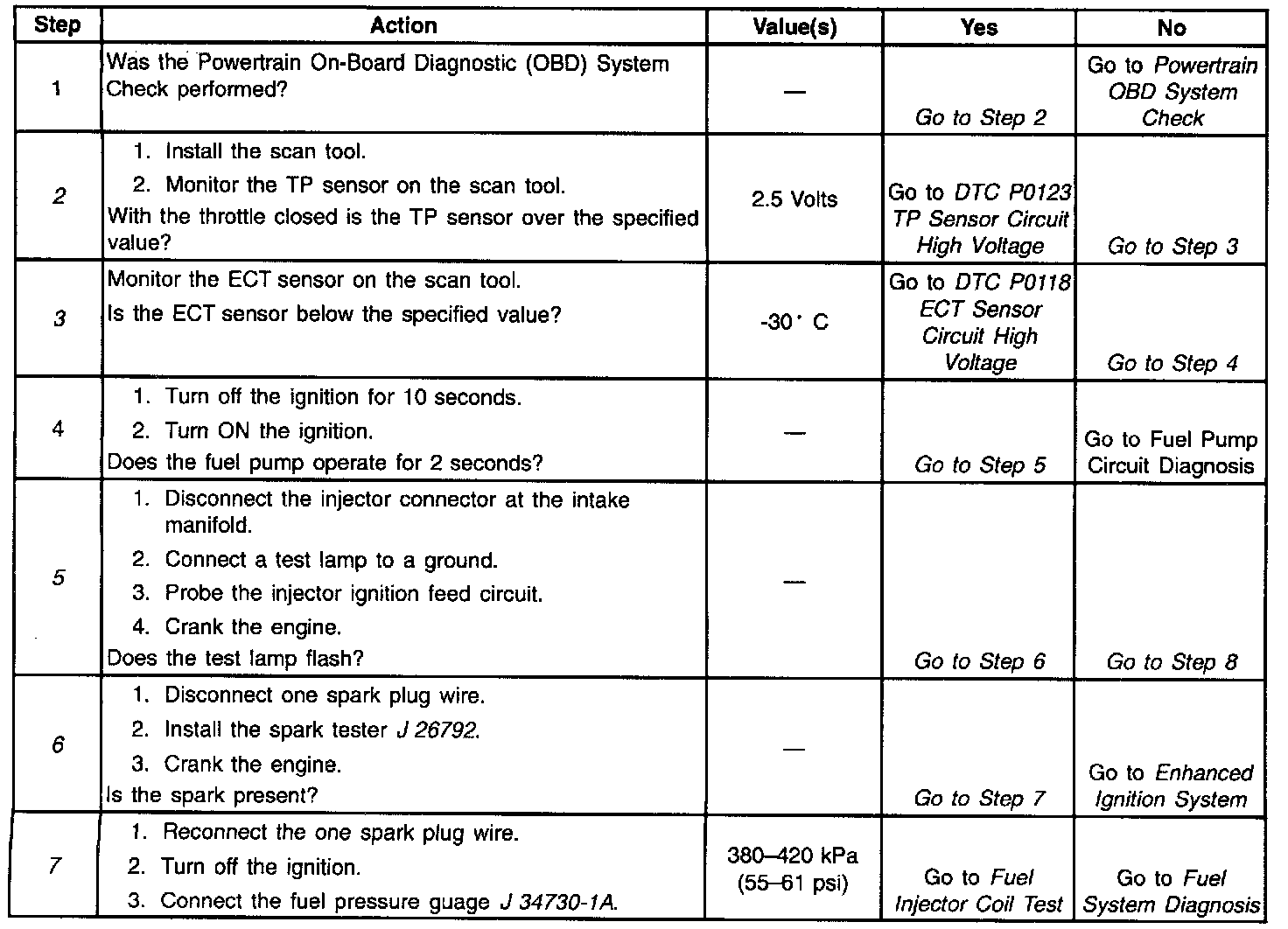 2. It the signal is over 2.5 volts, the engine may be in the clear flood mode which will cause starting problems.