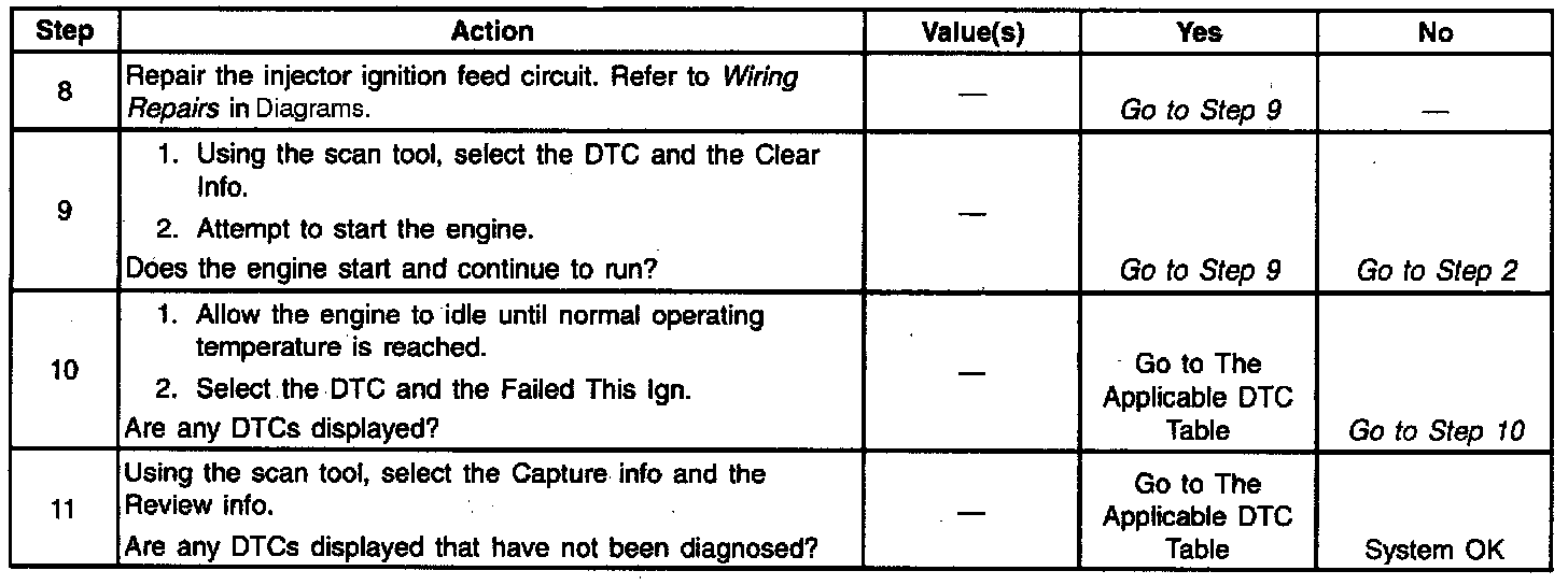 The numbers below refer to the step numbers on the diagnostic tables.