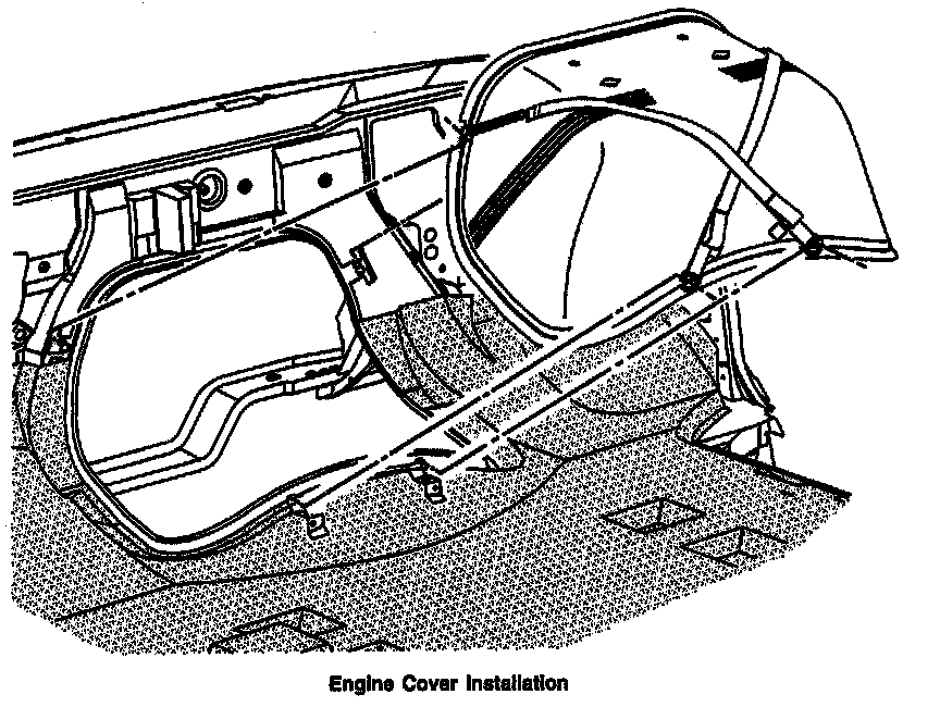 IMPORTANT: Ensure that the engine cover sealing strip is properly seated between the engine cover and the vehicle.
