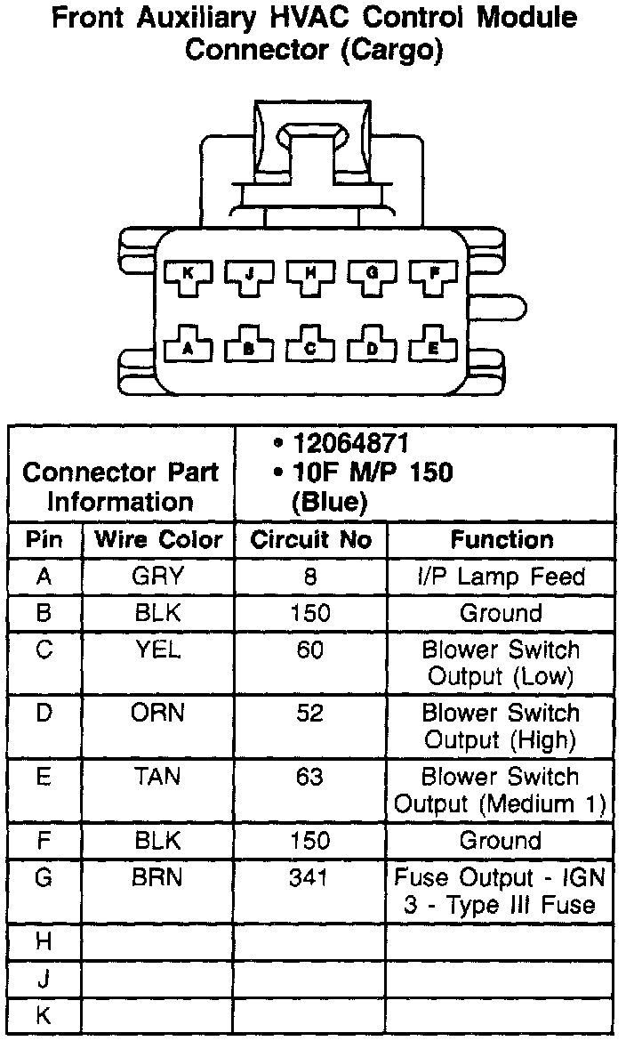 Front Auxiliary HVAC Control Module Connector (Cargo):