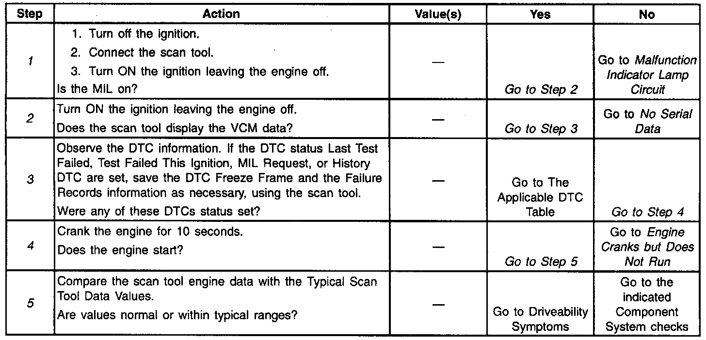Understanding the table properly reduces the diagnostic time. Proper use of the OBD helps prevent the unnecessary replacement of good parts.