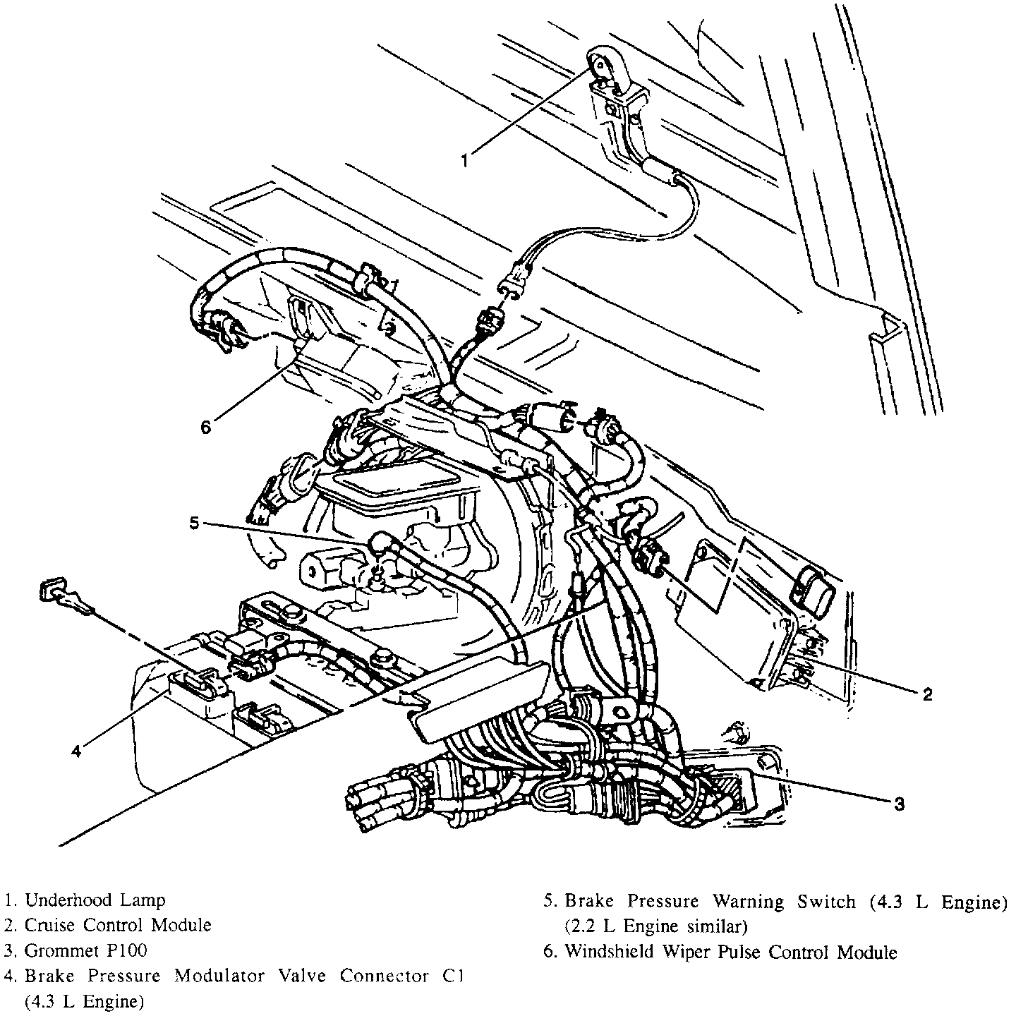 Engine Compartment Wiring (LH Rear) (4.3L Shown Others Similar):