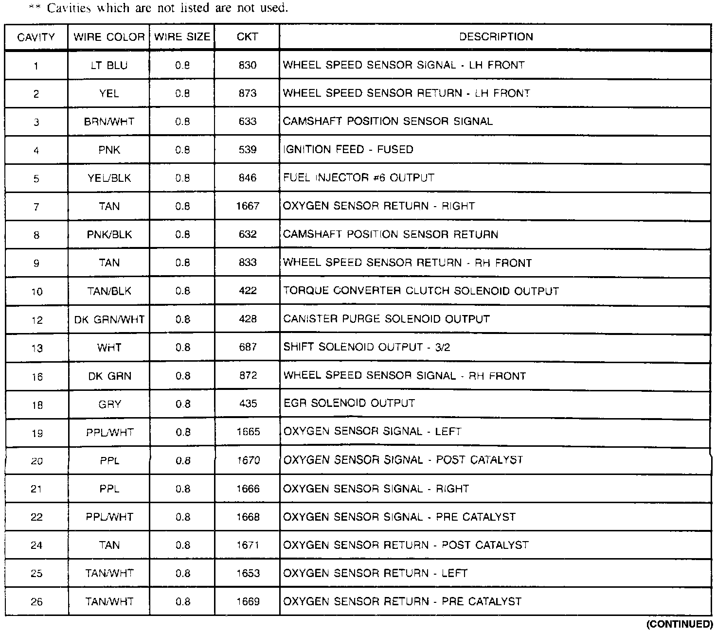 Vehicle Control Module Connector: C1 (Part 2 Of 2):