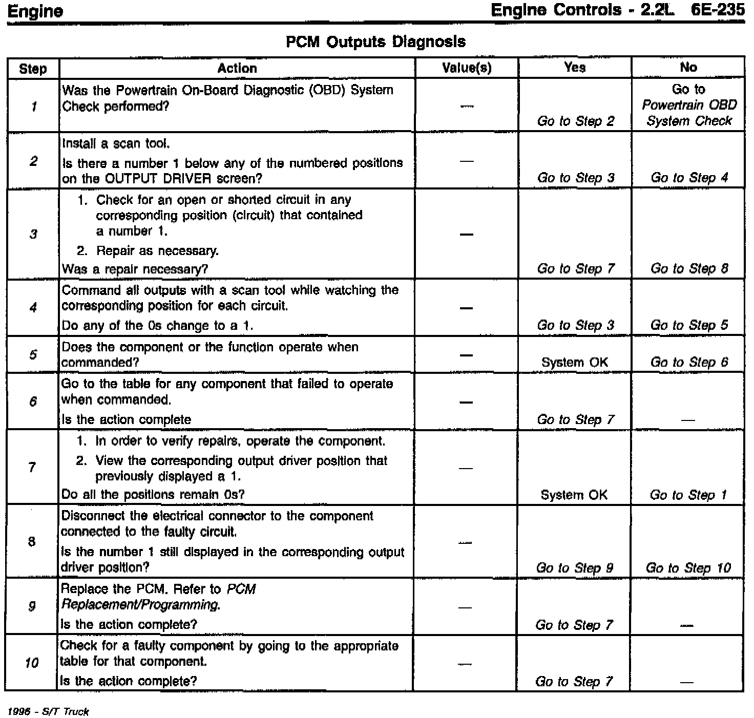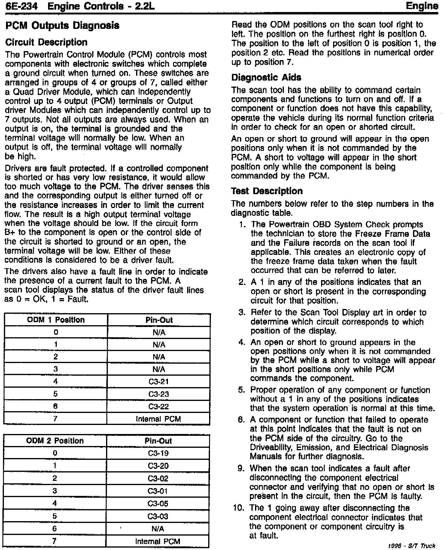 Section 6E - Engine Controls Revised PCM Output Diagnosis Table