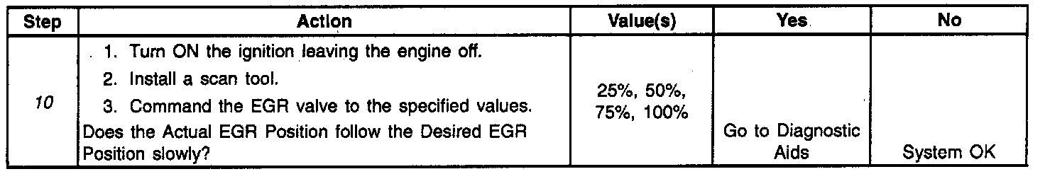 4. This step verifies if the fault is present and also verifies if a repair corrected the problem. Refer to the Diagnostic Aids for an explanation on the EGR EWMA. If the EGR EWMA value stays near 0 or a positive number after several tests have been run, then a small restriction may still exist. Be sure to check the EGR pipe for damage or dents and the EGR valve for any excessive carbon build up.