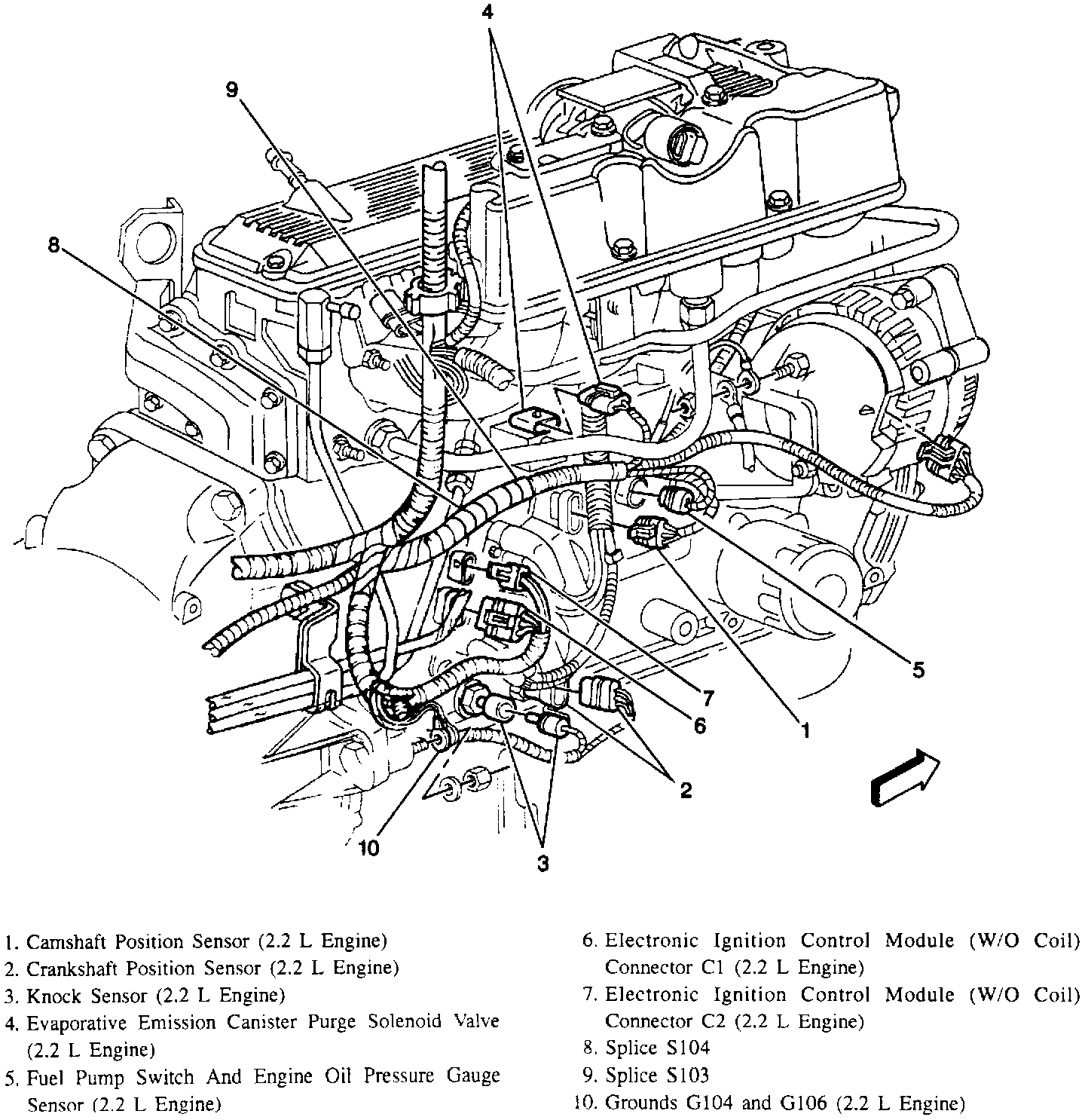 Engine Wiring, RH Side (2.2L Engine Shown Others Similar):