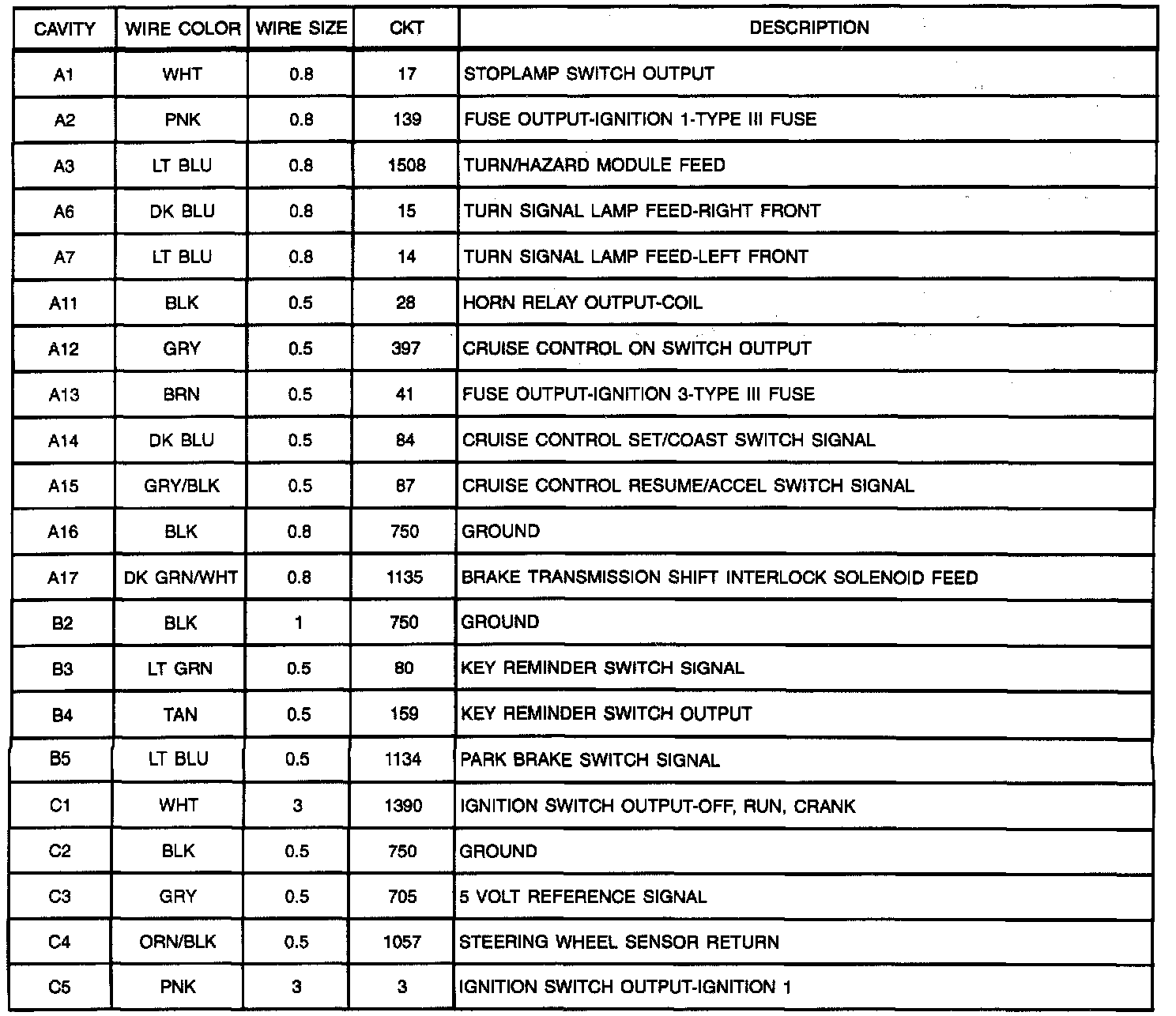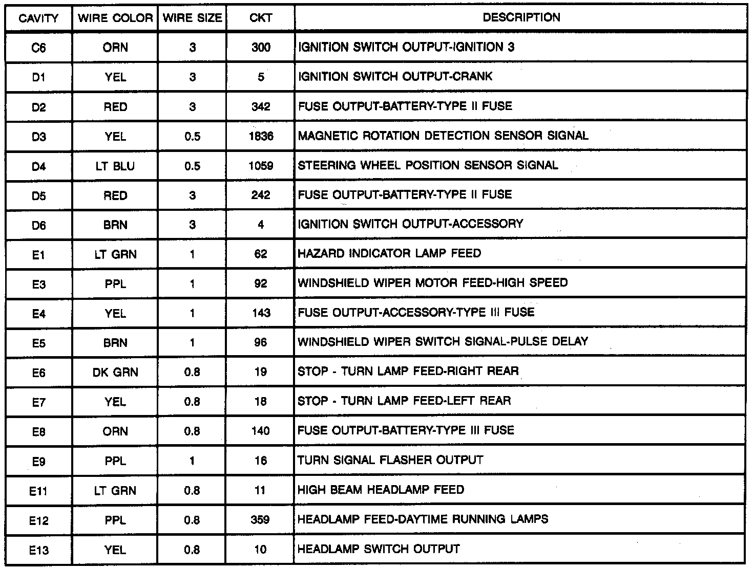 C201: I/P To Steering Column Harness Connector (Part 2 Of 2):