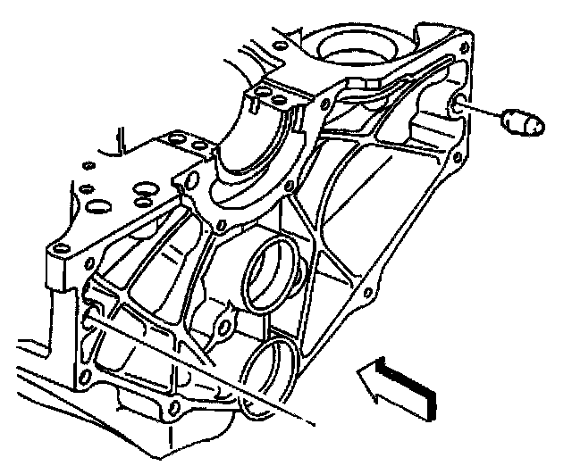 6. Remove the engine block left rear oil gallery plug.