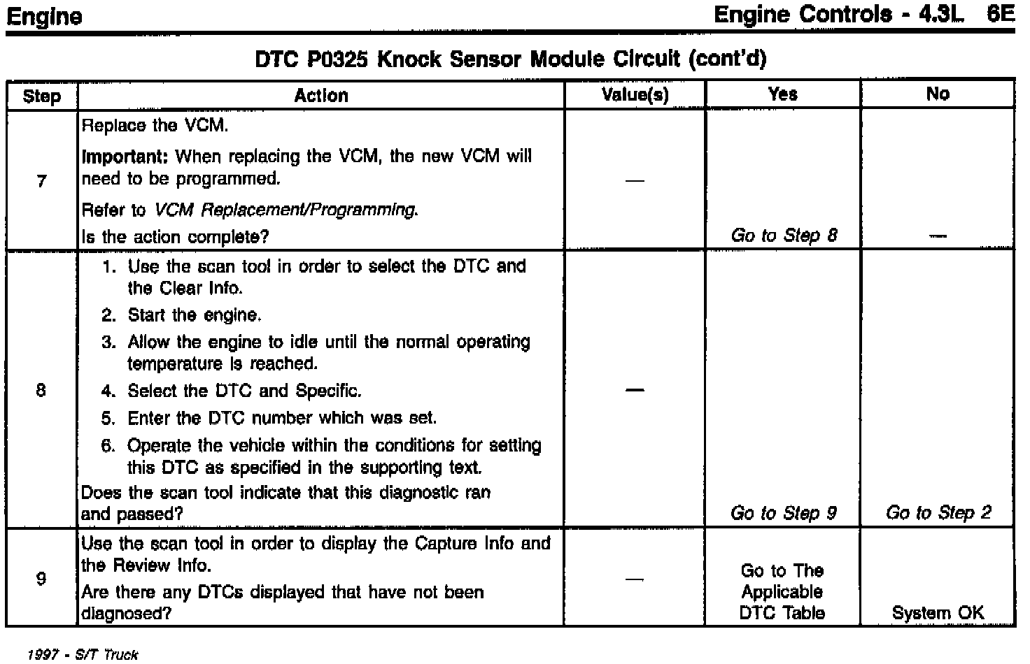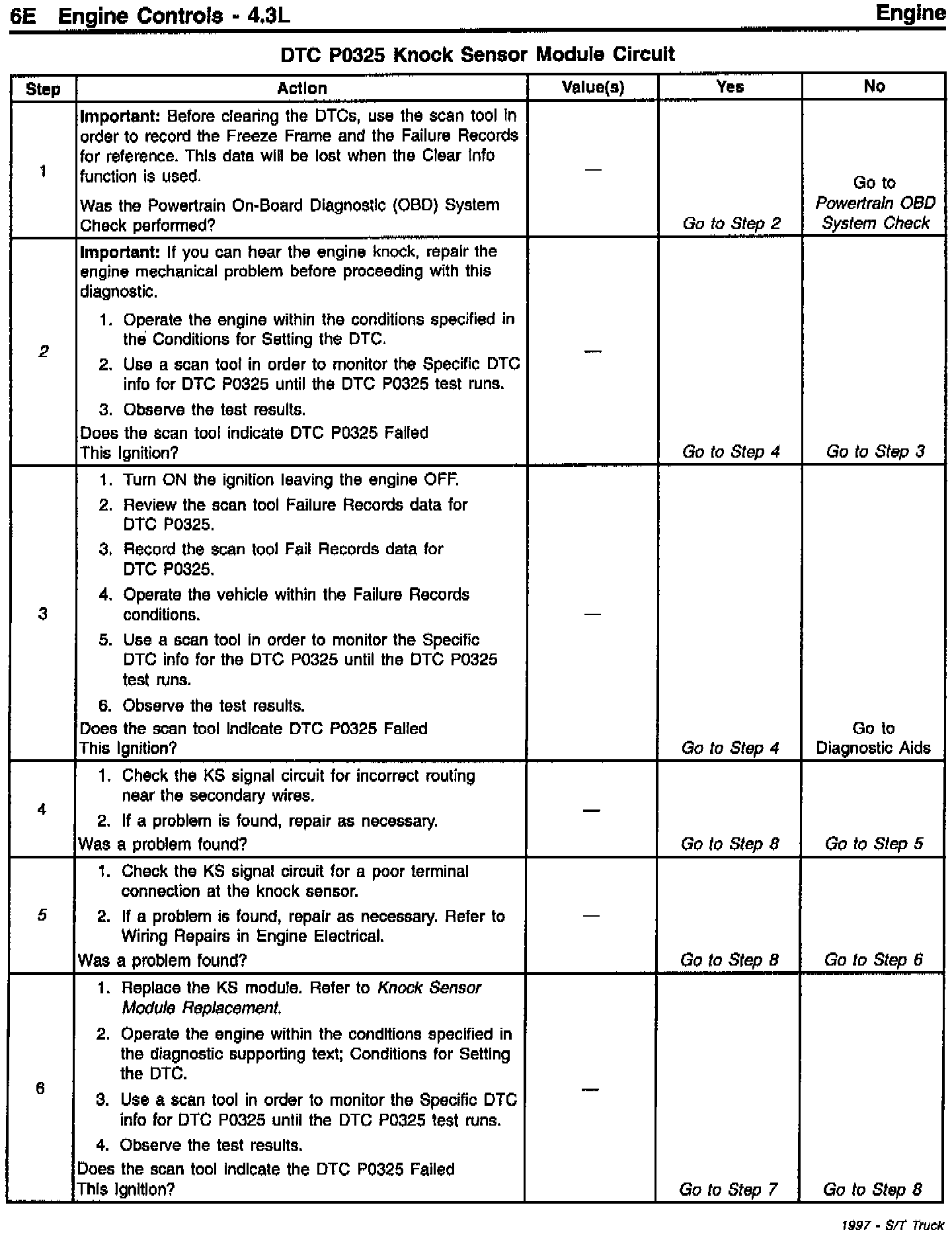 This bulletin is being issued to add Diagnostic Trouble Code P0325 which was missing from the 1997 S/T Truck Service Manual, Book 2 of 2.
