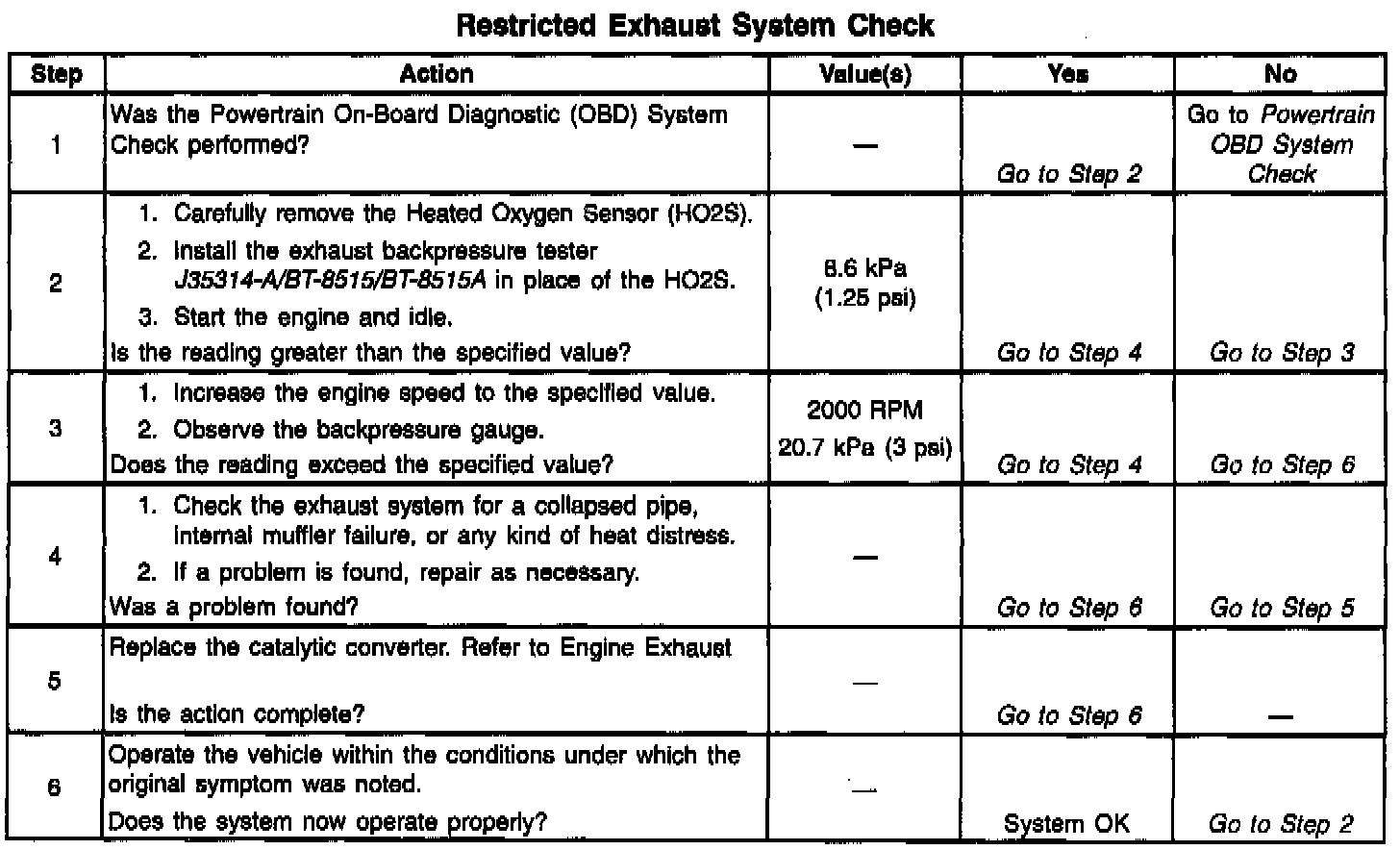 Restricted Exhaust System Check: