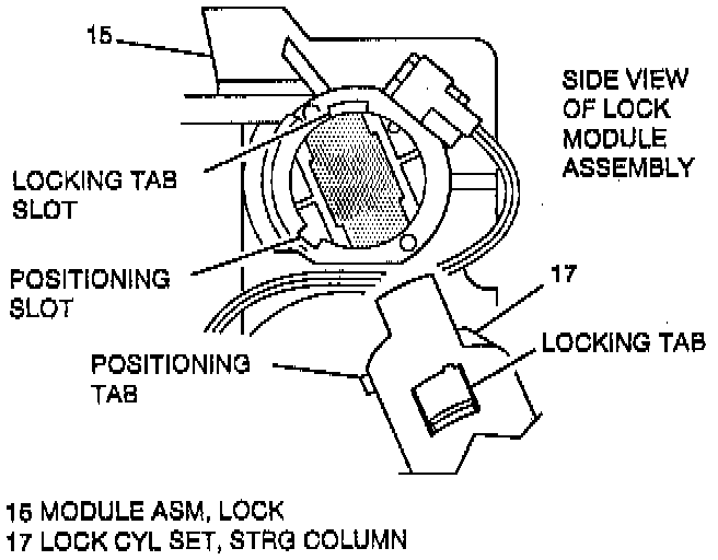 3. Key alarm switch from module assembly (15).
