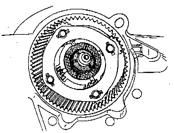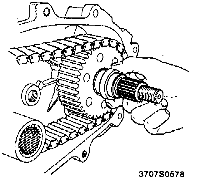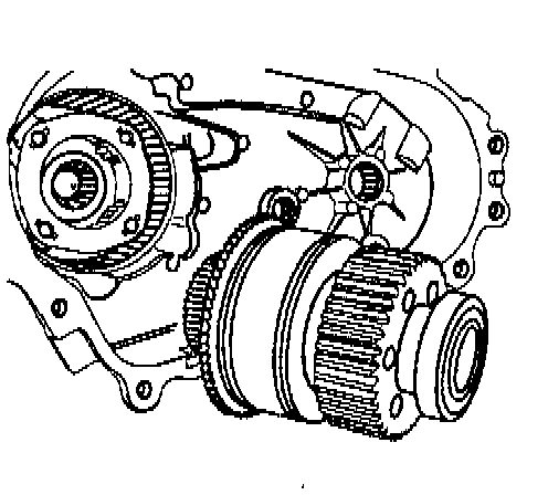 5. Sun gear shaft, sun gear shaft bearing, drive sprocket spacer, drive sprocket, and viscous clutch as an assembly, from the planet carrier assembly.
