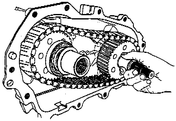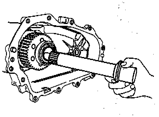 - Turn the rear case half over and support the output shaft assembly from the inside of the rear case half.