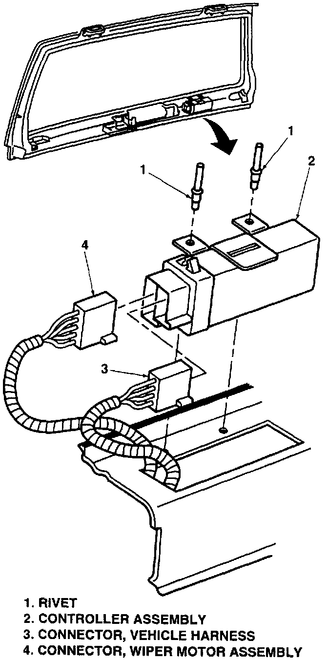 1. Controller assembly on liftgate with two rivets using a hand-held rivet gun.