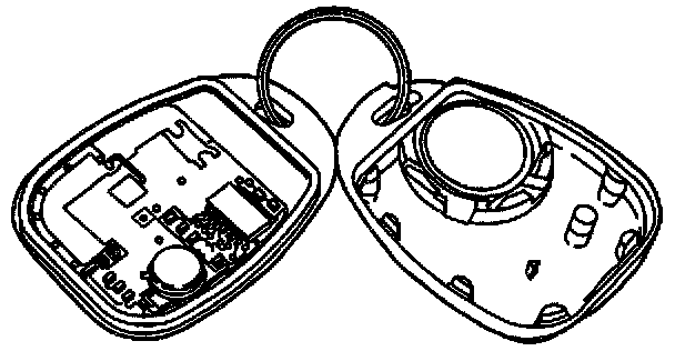 ^ Insert a dime between the two halves of the transmitter near the key ring hole and twist.