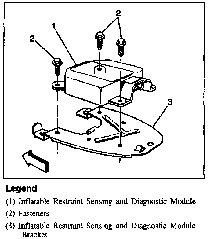 ^ Point the arrow on the SDM toward the front of the vehicle.