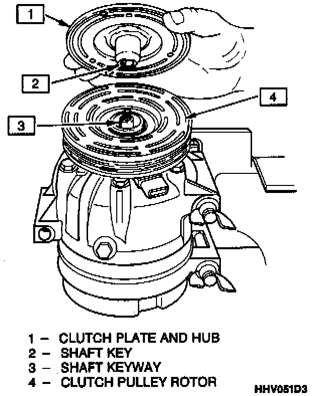 3. Align the shaft key with the shaft keyway and place the clutch plate and the hub assembly onto the compressor shaft.