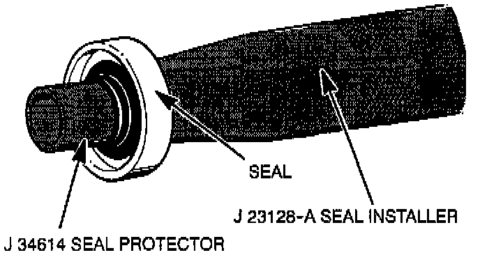 4. Install the new seal retainer ring with its flat side against the seal, using snap-ring pliers J 5403. Use the sleeve from O-ring installer J 33011 to press In on the seal retainer ring so that it snaps into its groove.