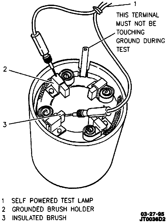 D. Momentarily ground solenoid "M" terminal to motor housing. This energizes pull-in coil in solenoid and causes drive pinion to move into cranking position. Drive pinion will stay in this position when momentary ground is removed.