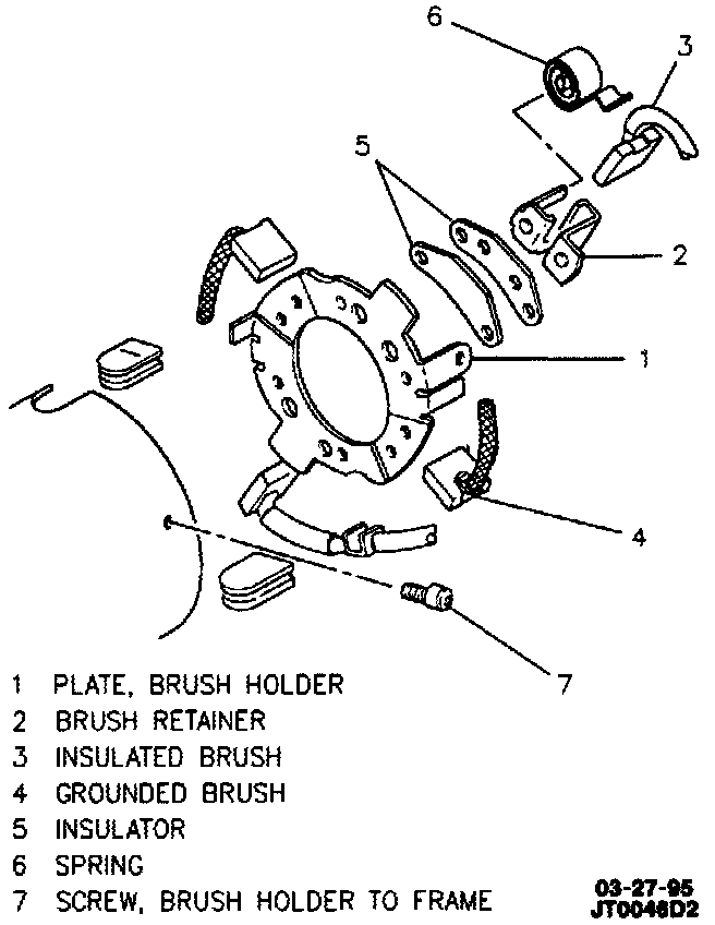 D. Release brushes onto commutator. Be sure all four brushes move freely in holders and are in contact with commutator.