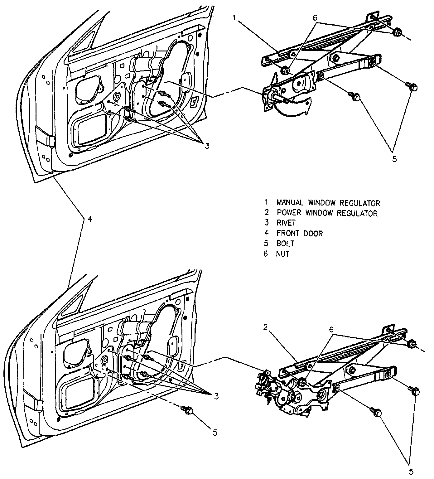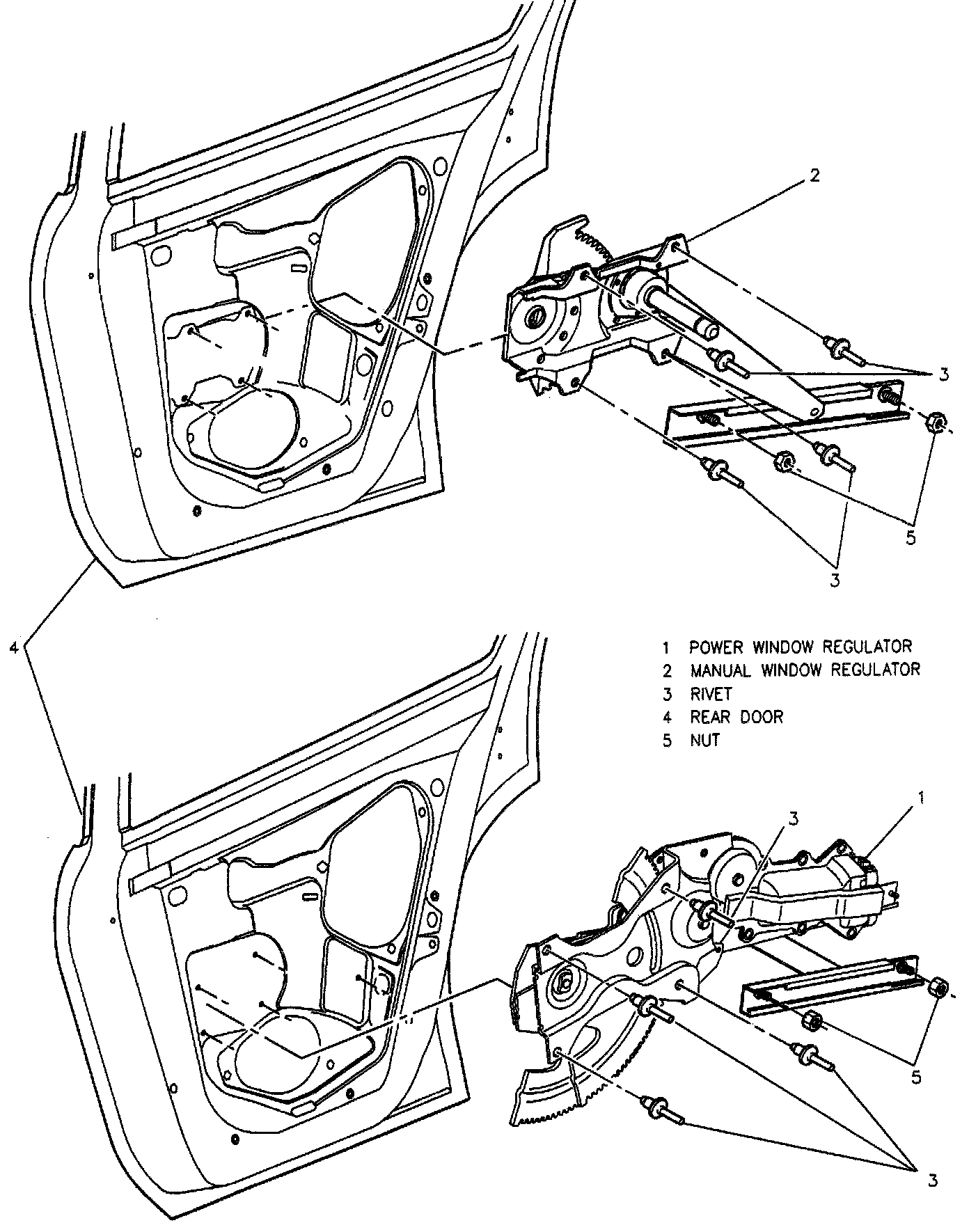 5. Door regulator rivets.
