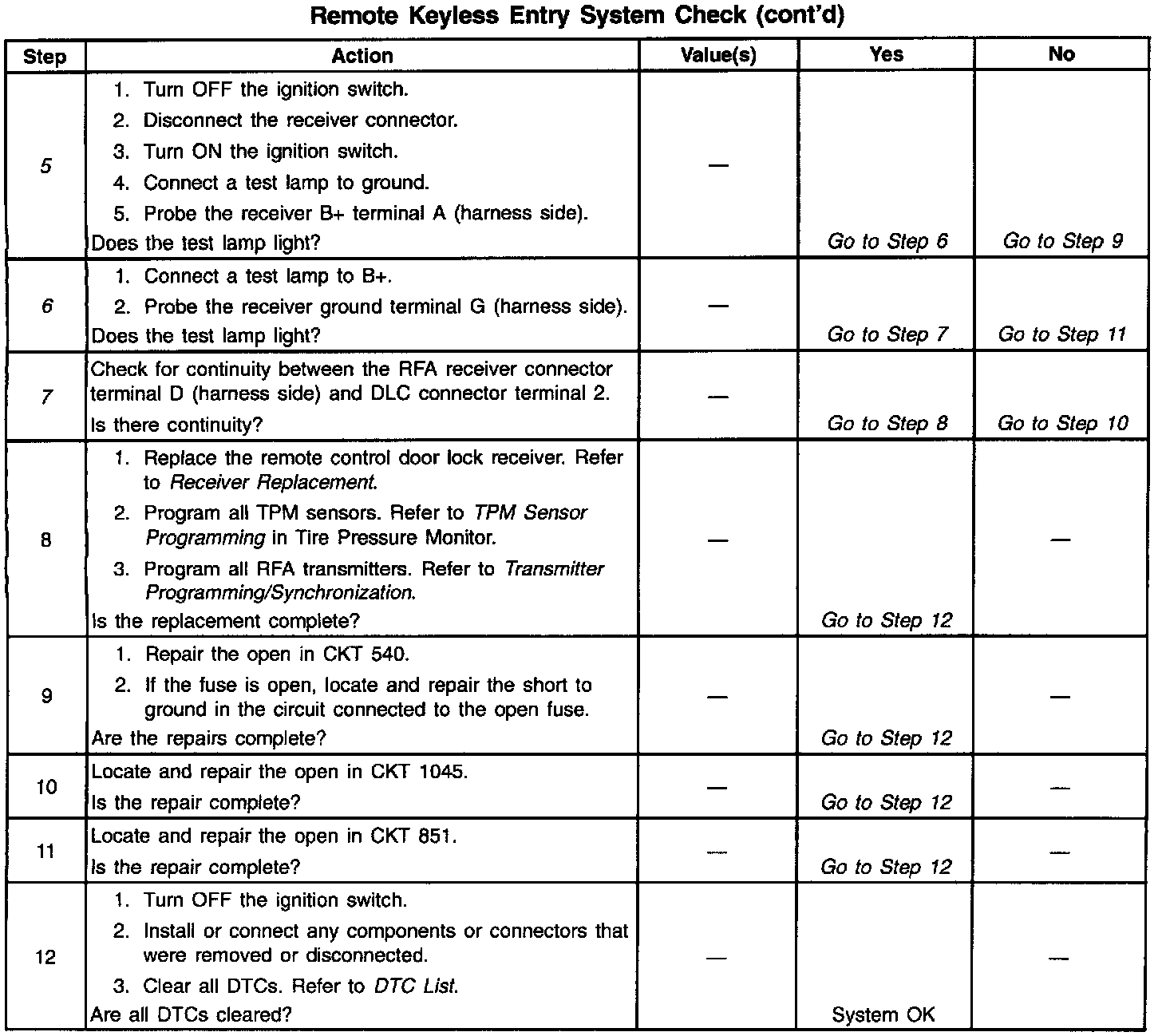 ^ When a RFA system malfunction is corrected, clear the receiver's diagnostic memory before road testing the vehicle in order to avoid reading the original DTC stored in the memory.