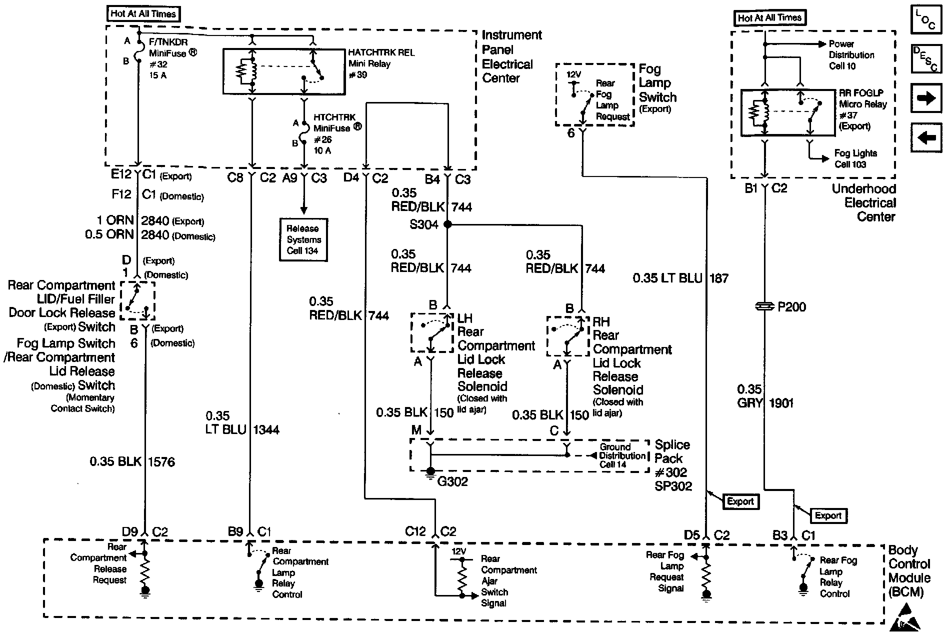 Body Control Module Schematics (Fuel Door, Hatch And Rear Fog Lamp Control):