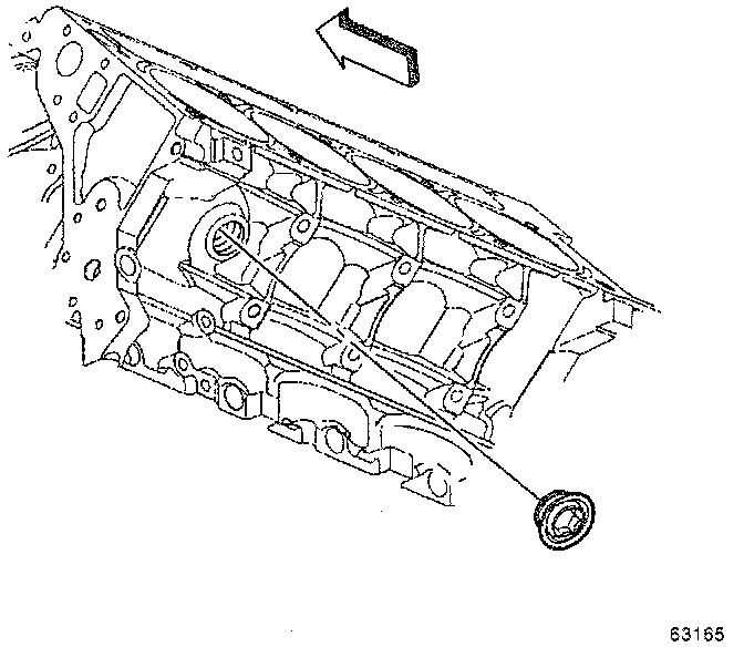 11. Inspect the engine block rear oil gallery plug and O-ring seal. If the O-ring seal on the plug is not cut or damaged, the rear oil gallery plug may be reused.