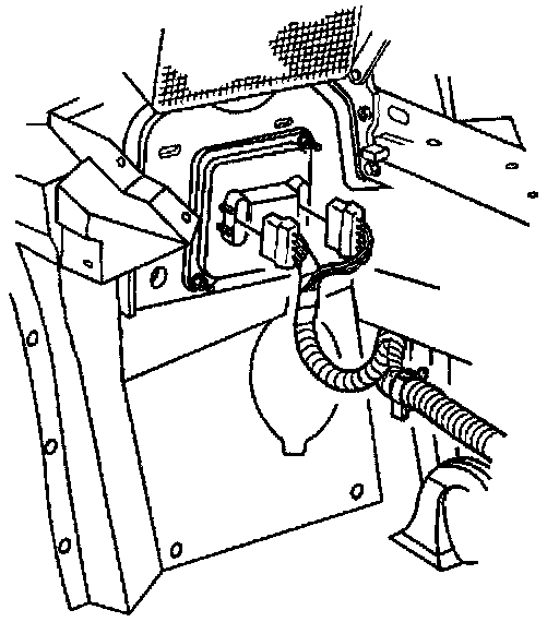7. Connect the RH headlamp wiring harness electrical connector to the forward lamp wiring harness.