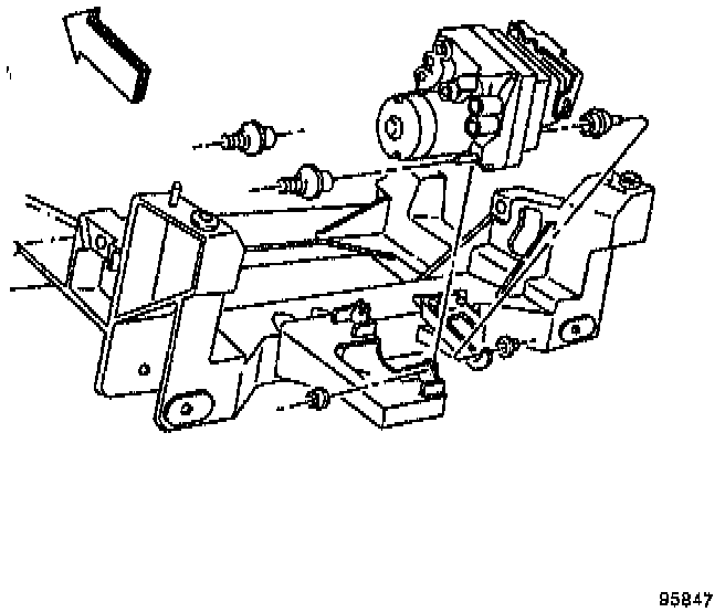 4. Remove the right side EBTCM/Brake Pressure Modulator Valve (BPMV) bracket (opposite the brake pipes) from the crossmember by removing the three bolts.