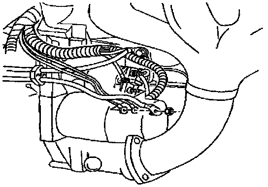 12. Disconnect the positive battery cable and nut from the starter motor.