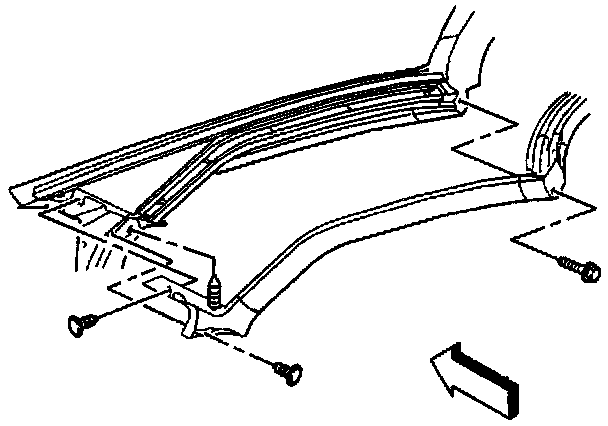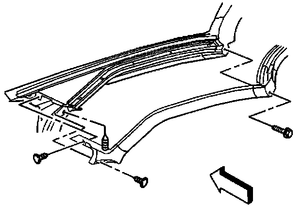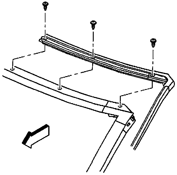 6. If replacing the weatherstrip with a new weatherstrip, remove the upper retainer screws and retainer from the windshield frame.
