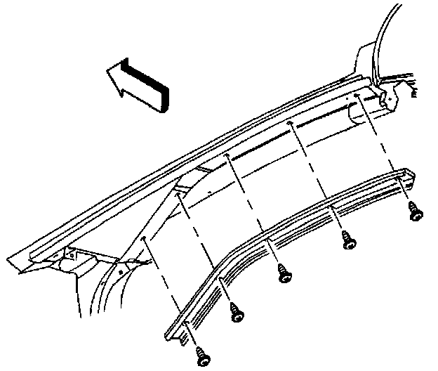 3. Install the windshield weatherstrip side retainer with screws at the following locations: