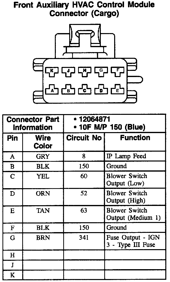 Front Auxiliary HVAC Control Module Connector (Cargo):