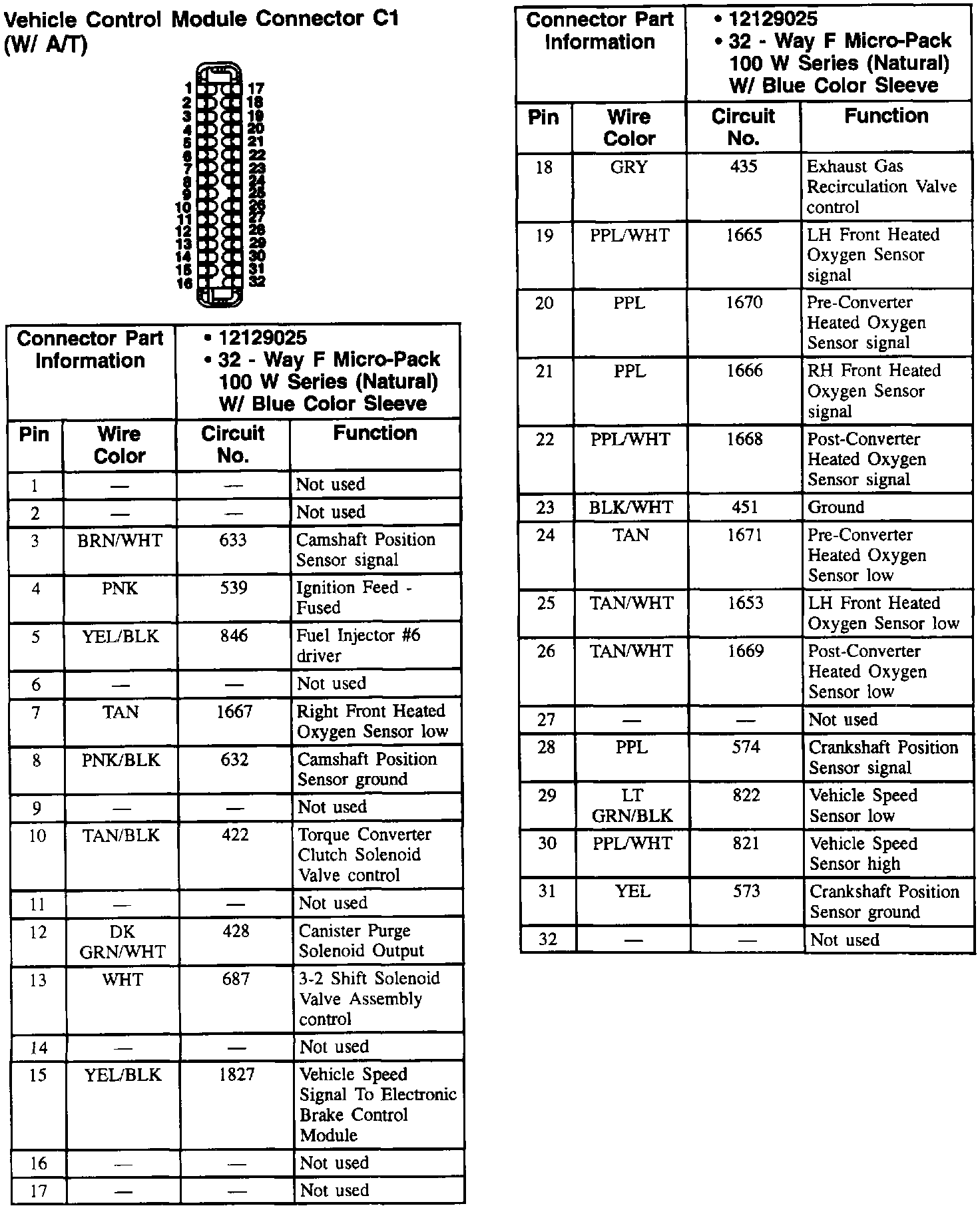 Vehicle Control Module Connector: C1 (W/ A/T):