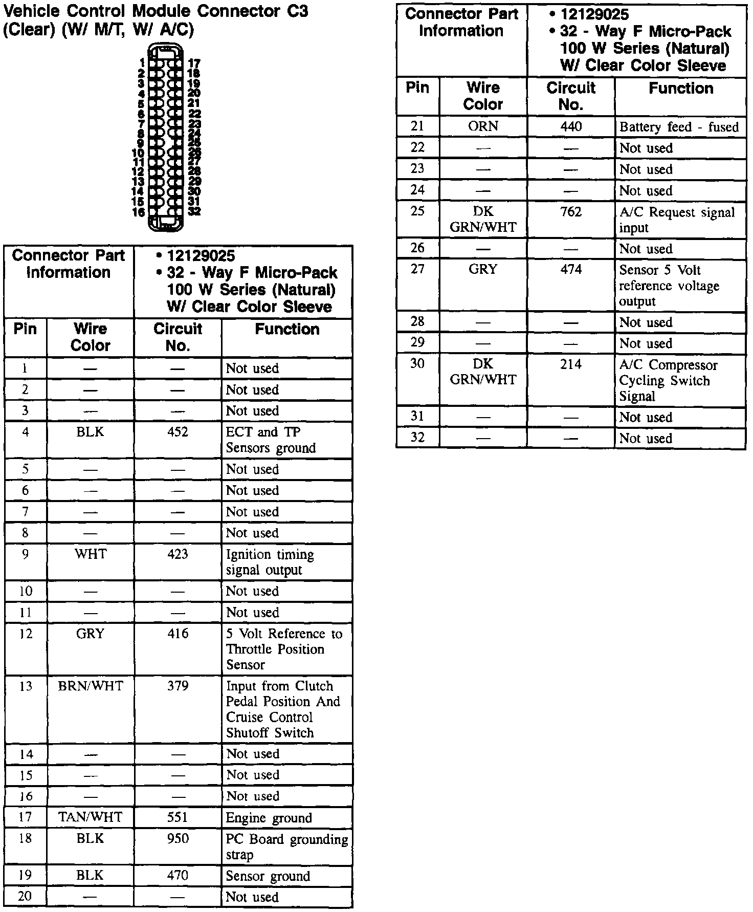 Vehicle Control Module Connector: C3 (Clear) (W/ M/T, W/ A/C):