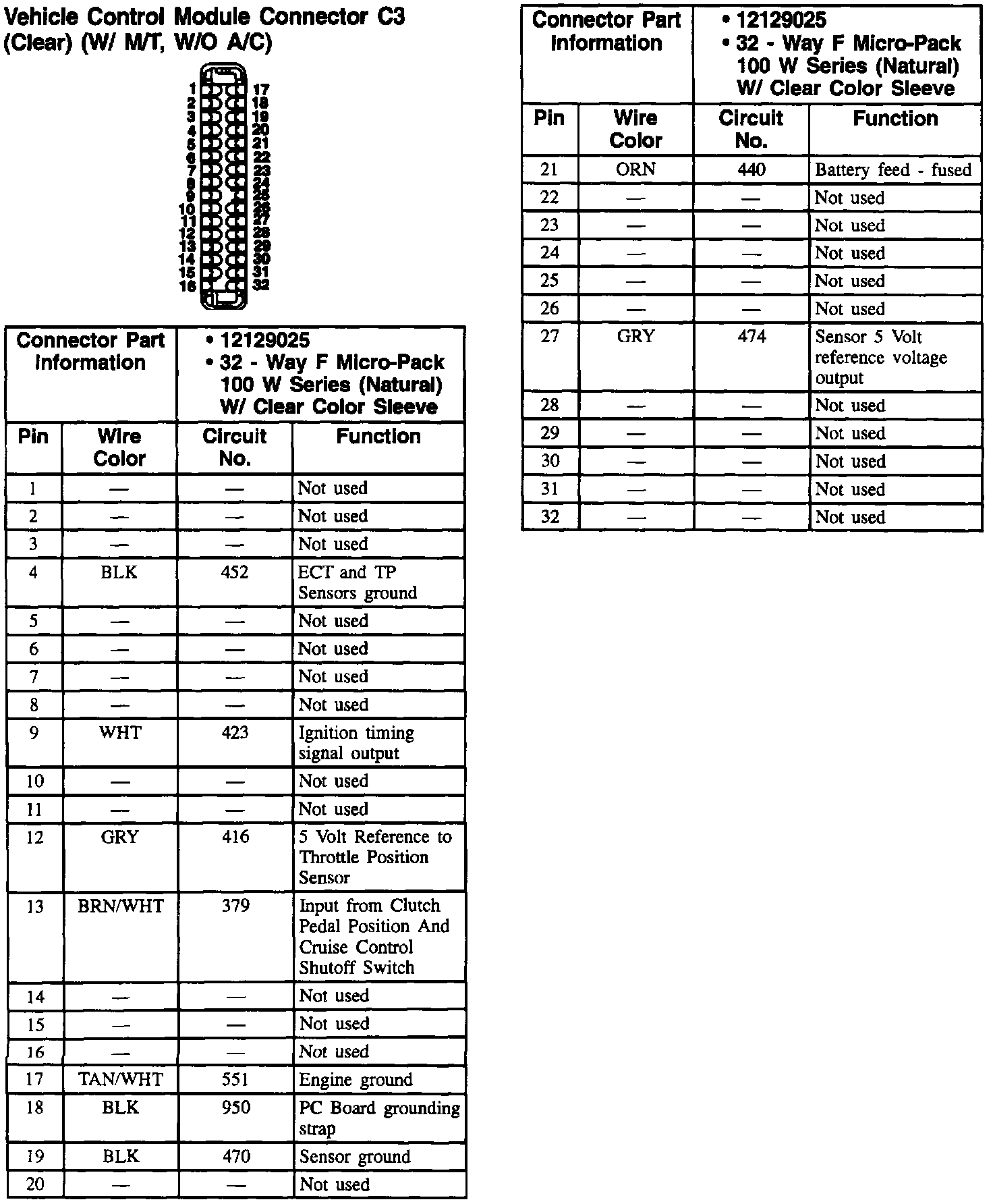 Vehicle Control Module Connector: C3 (Clear) (W/ M/T, W/O A/C):