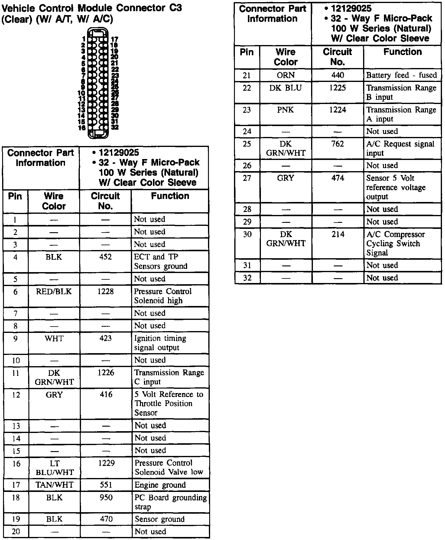 Vehicle Control Module Connector: C3 (Clear) (W/ A/T, W/ A/C):