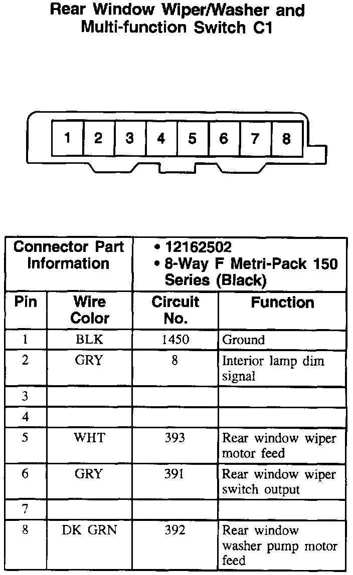 Rear Window Wiper/Washer Multi-function Switch: C1: