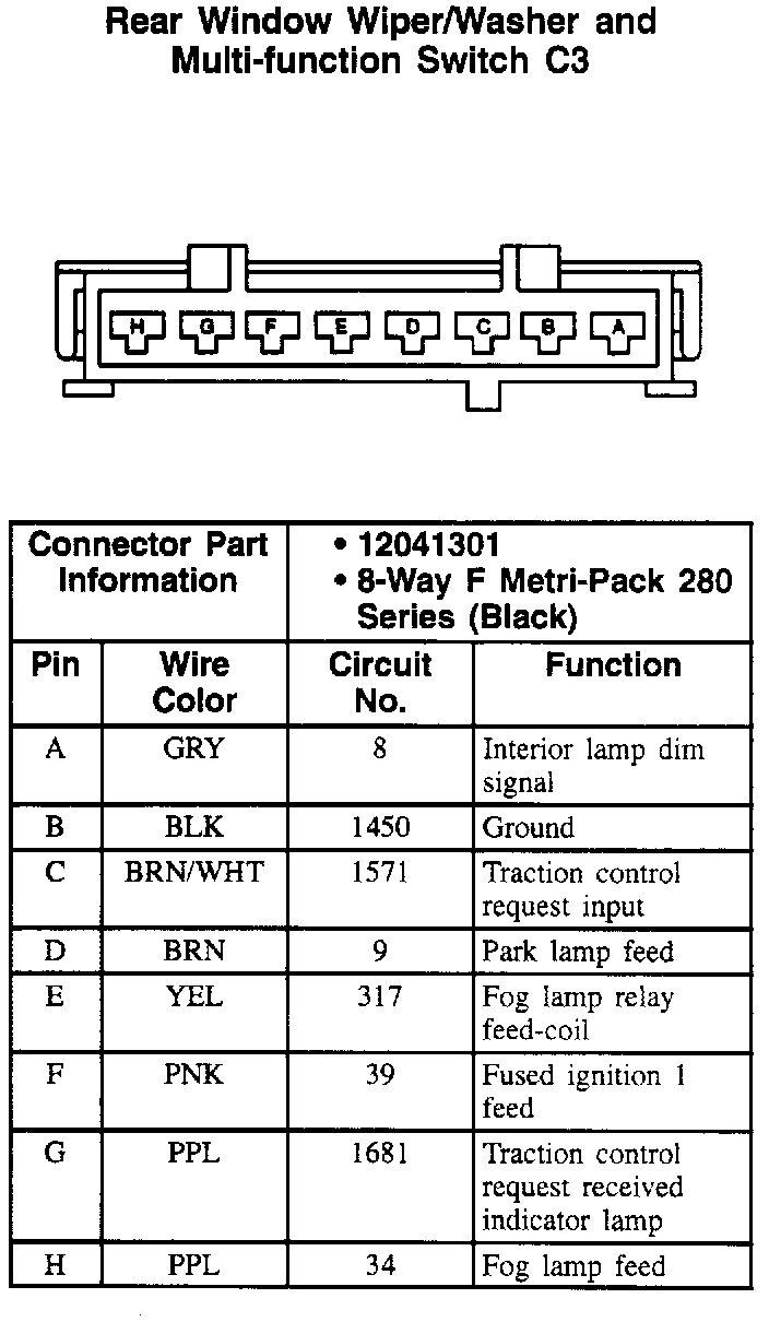 Rear Window Wiper/Washer Multi-function Switch: C3: