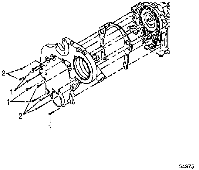 - Tighten the large longer bolts (2) to 55 Nm (41 ft. lbs.).