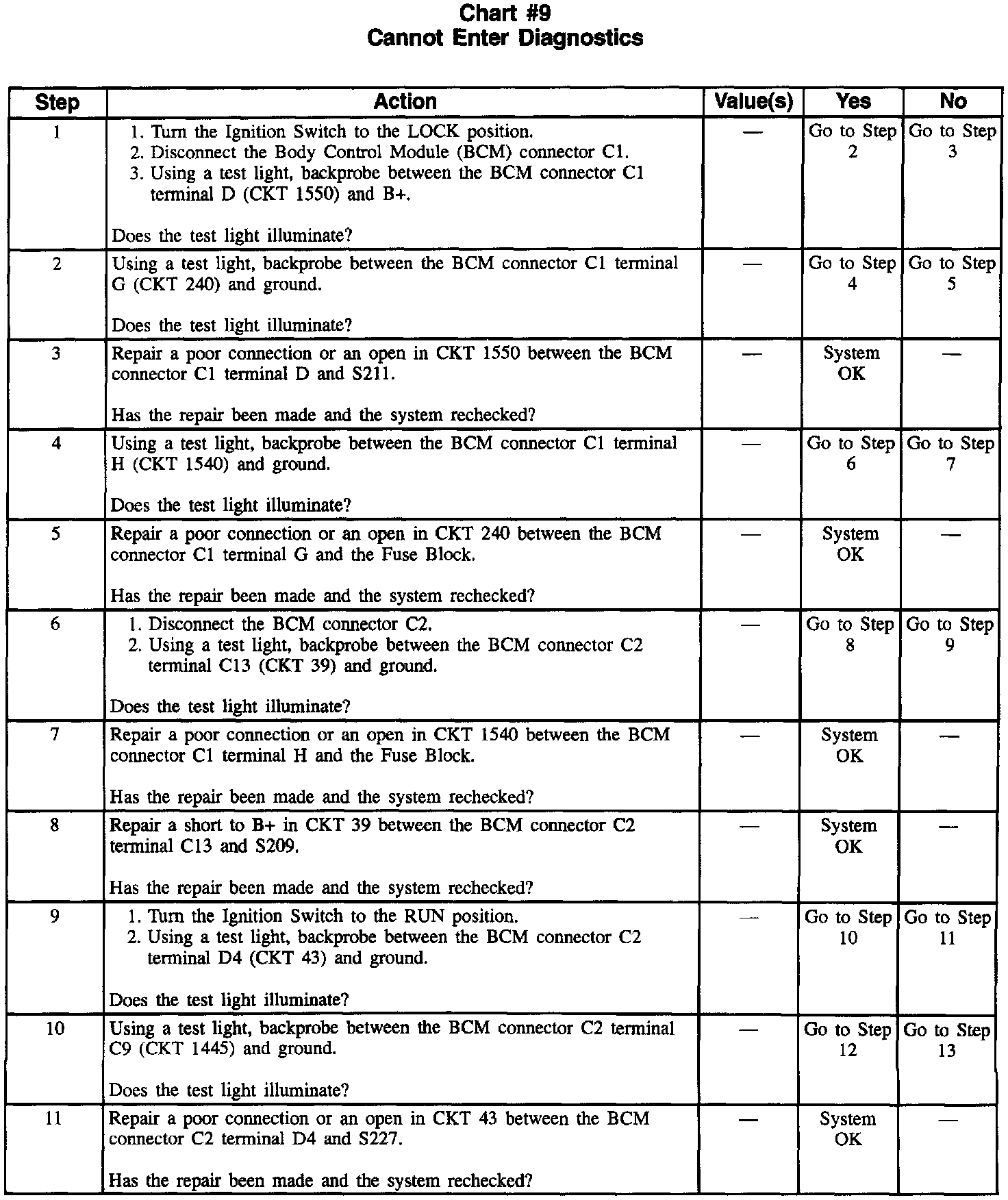 Chart #9 Cannot Enter Diagnostics (Part 2 Of 2):