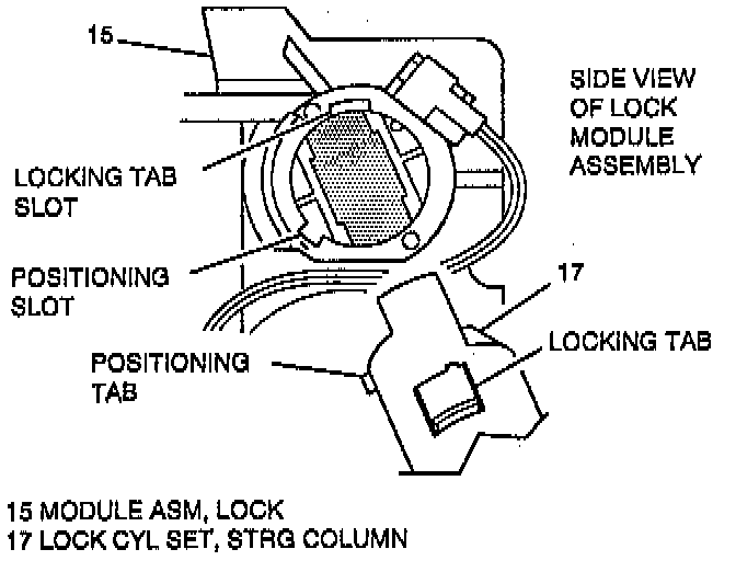 ^ Line up locking tab with slot in lock module assembly (15) and push into position.