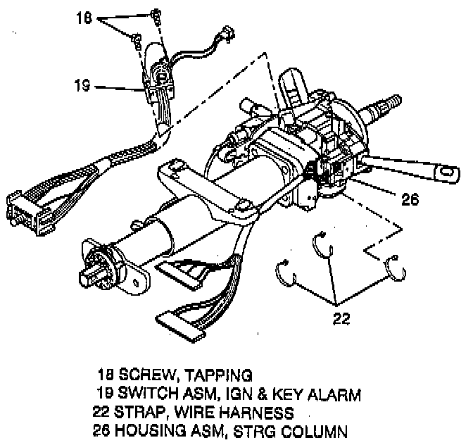 ^ Push lock bolt (11) into steering column housing assembly (26) until flush.