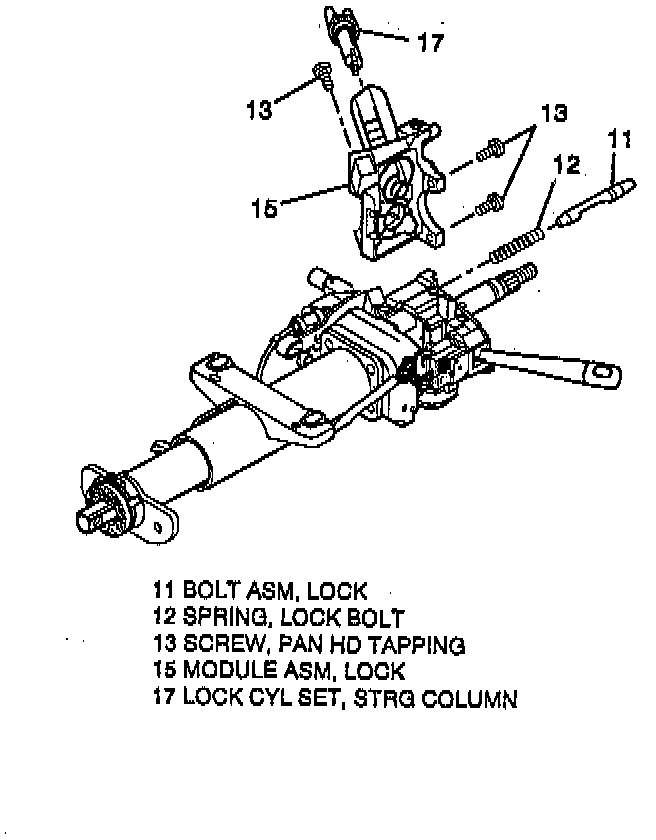 CAUTION: Lock bolt assembly (11) is under slight spring tension from lock bolt spring (12). Hold lock bolt (11) in place while removing lock module assembly (15).