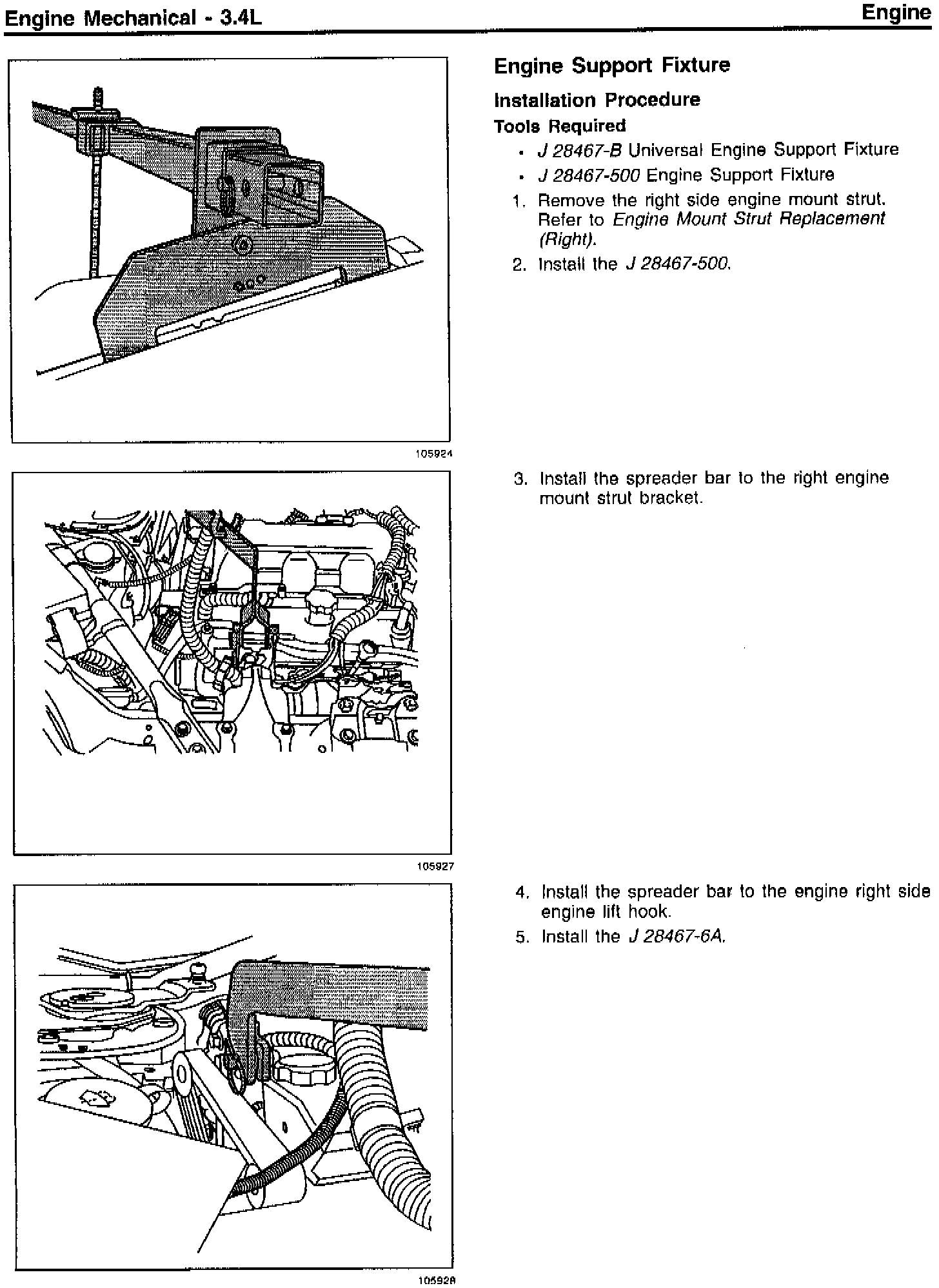 This bulletin is being issued to revise the Engine Support Fixture Service Procedure to include the J 28467-5OOUPD in Section 6A - Engine Mechanical of the Service Manual.
