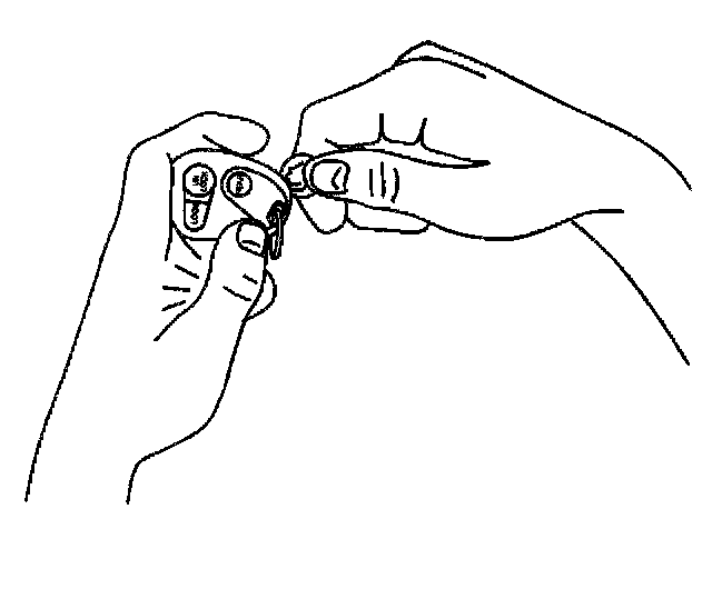 1.1. Insert a dime between the 2 halves of the transmitter case at the slot provided near the key ring hole.