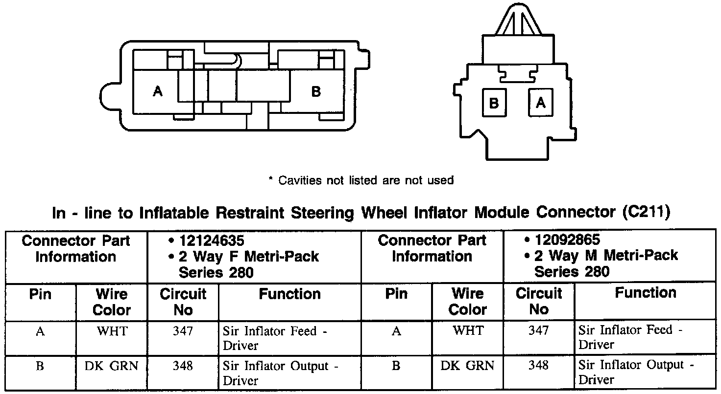 C211: In-line To Inflatable Restraint Steering Wheel Inflator Module Connector: