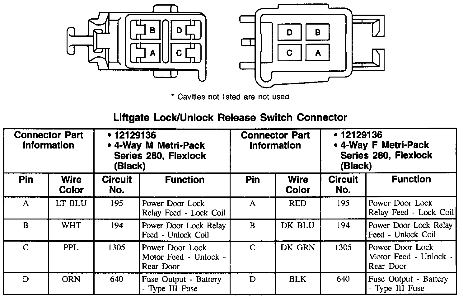 Liftgate Lock/Unlock Release Switch Connector: