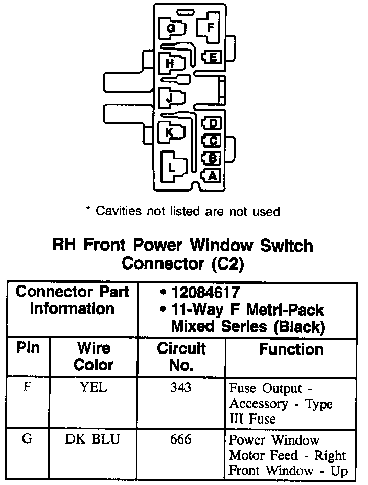 RH Front Power Window Switch Connector: C2 (Part 2 Of 2):